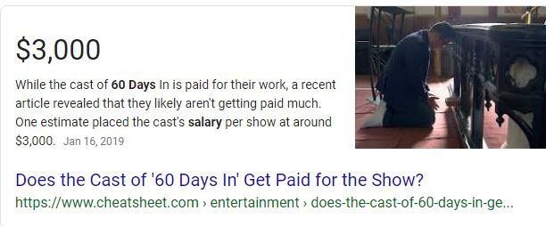 It looks like these participants are not making as much as you think for taking part in the show. When 60 days in made its debut on a e back in march 2016 it was purported to be an unrehearsed in depth look at the indiana penal system.